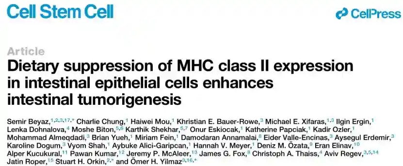 近日,来自美国哈佛医学院的SemirBeyaz团队在《细胞•干细胞》杂志上发表了重要研究成果[1]。他们发现高脂膳食(HFD)会造成肠道微生物群落改变,导致包括肠干细胞在内的肠上皮细胞表面MHCII分子表达下调,借此扰乱了肠道微生物-干细胞-免疫细胞三者之间的相互作用,进而增加了肠道癌症发生风险。