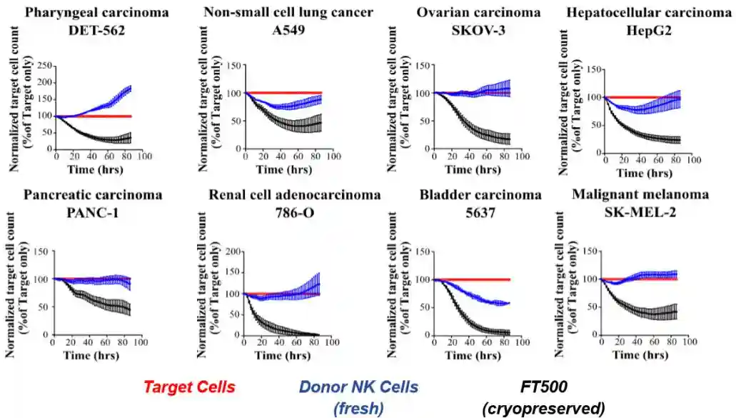 FateTherapeutics做过一个iPSC分化的NK和健康供体提供的NK细胞的头对头对比,数据显示其FT500产品(i-NK)对于肿瘤的杀伤能力比健康供体的NK细胞更加好(图5)。