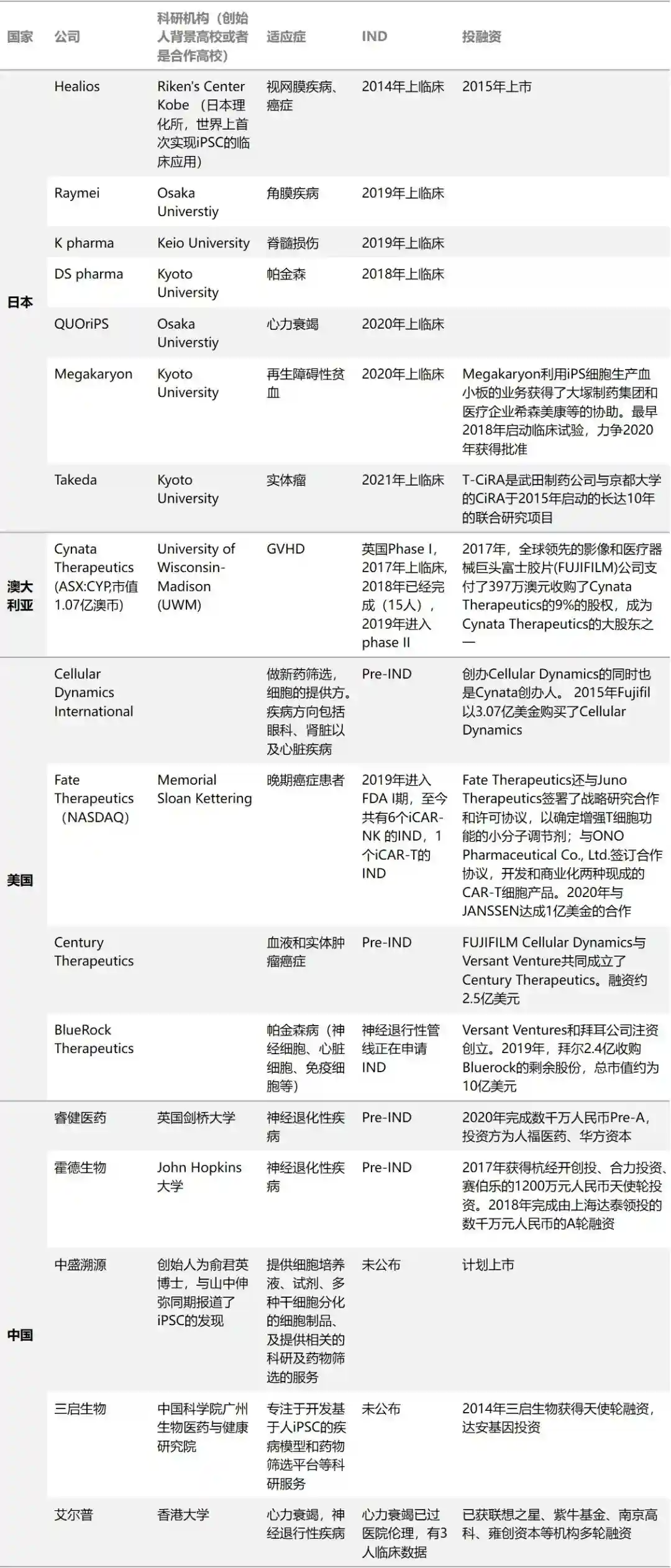 图8.全球部分iPSC公司的临床进展(奇迹之光分析整理)