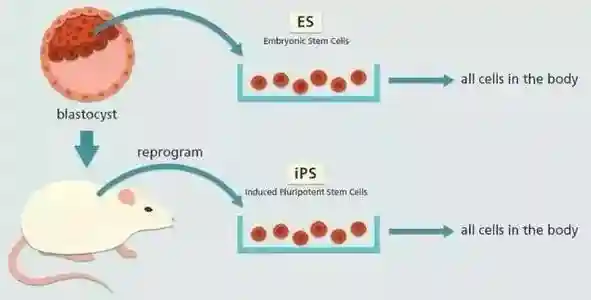 他们把Oct3/4,Sox2、c-Myc和Klf4这四种转录因子基因克隆入病毒载体,然后引入小鼠成纤维细胞,发现可诱导其转化为一种新细胞,即诱导多能干细胞iPSC。iPSC在形态、基因和蛋白表达、表观遗传修饰状态、细胞倍增能力、类胚体和畸形瘤生成能力、分化能力等方面都与胚胎干细胞极为相似,具备和胚胎干细胞一样的应用潜能。iPS技术在问面世短短5年后,就获得了2012年诺贝尔生理学医学奖。