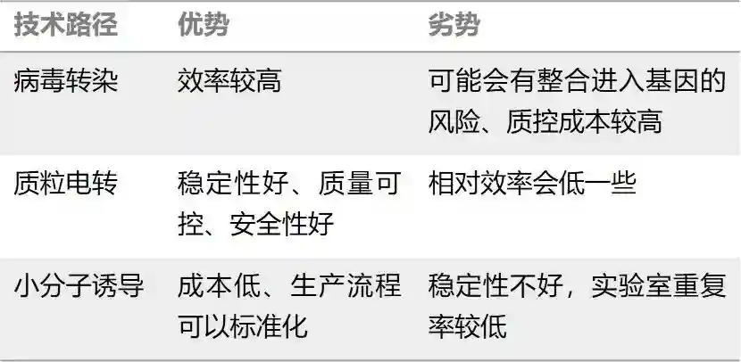 经过十几年的技术优化,现在iPSC已经可以从多种体细胞(包括血液、尿液、皮肤等)中诱导产生。各种重编程技术的区别主要在于:转录因子的选择以及载体的使用。其技术路径主要分为病毒转染、质粒电转以及小分子诱导。