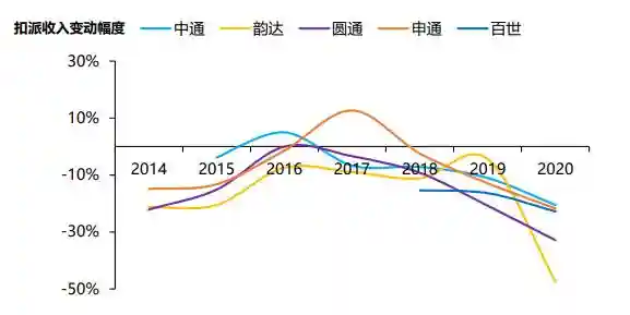 一份研报以申通为例做出测算,2020年申通的单票收入下滑了21%,其中单票面单销售收入降低了33.1%,单票派费收入贡献了54.3%的降幅,韵达同样是面单收入和派费收入下滑更大。