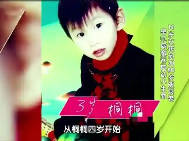 出生于河北的小女孩桐桐,4岁时就被查出患上了早衰症,开始加速衰老,桐桐的听力逐渐衰退,走路也走不稳,皮肤松弛,眼窝凹陷,此外桐桐的体力跟不上同龄小孩,陌生人见了桐桐都说桐桐长得就跟一个老太太一样。