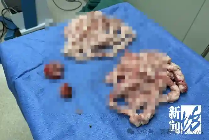 其中两个肌瘤宛如肠子一般,每个长2米多。