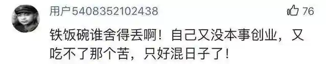 “铁饭碗谁舍得丢啊!自己没本事创业,又吃不了那个苦,只好混日子了!”