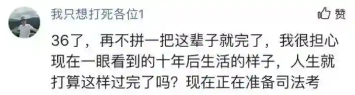 “36了,再不拼一把这辈子就完了,我很担心现在一眼看到的十年后生活的样子。人生就打算这样过完了吗?现在正准备司法考。”