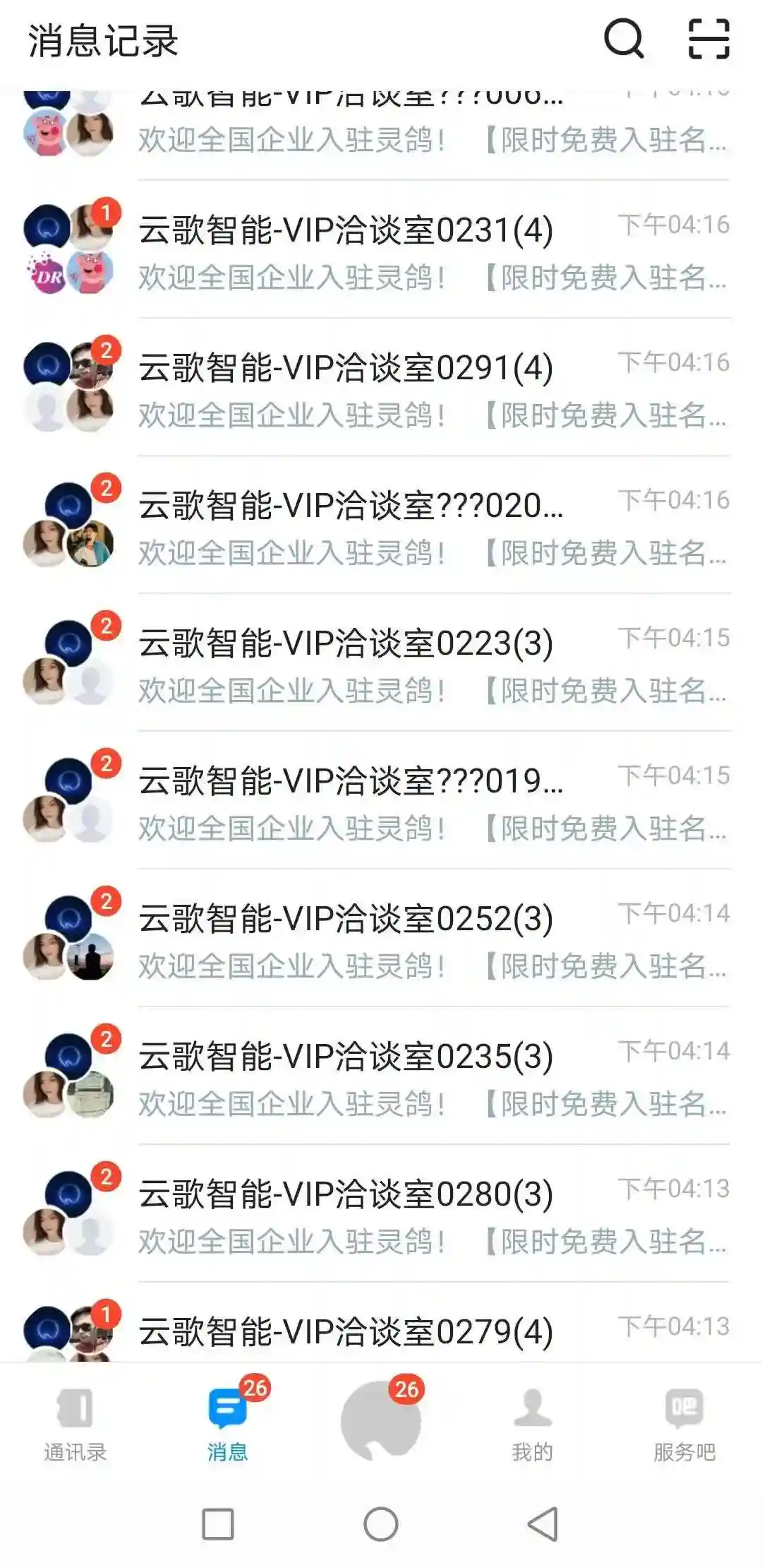 在【消息】里也可以看到你的VIP洽谈室的的群。