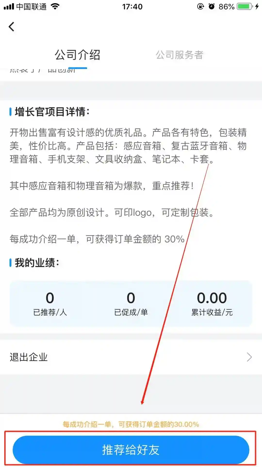 增长官推荐成功后,可以在【我的企业】找到对应公司,可以查看到自己的业绩和收益