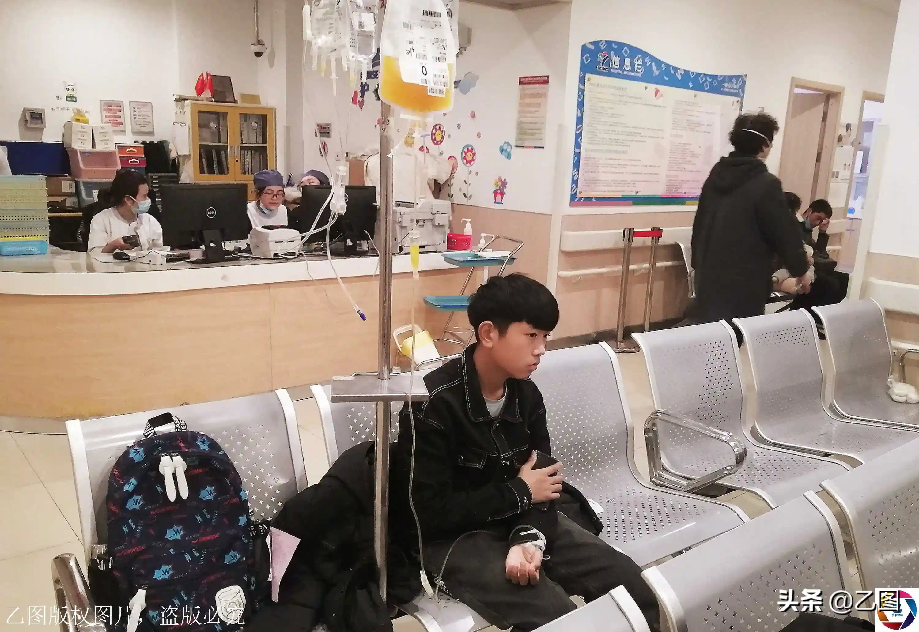 然而,几年后孟祥军的生活才刚刚有点起色,命运就和他开了个天大的玩笑。2016年7月底,儿子孟一鸣身上出现淤青,最后在上海儿童医学中心被确诊为再生障碍性贫血。当年8月,一鸣做了ATG治疗,起初很有效果,谁知2018年开始身体越来越差。图为孟一鸣在医院输液。
