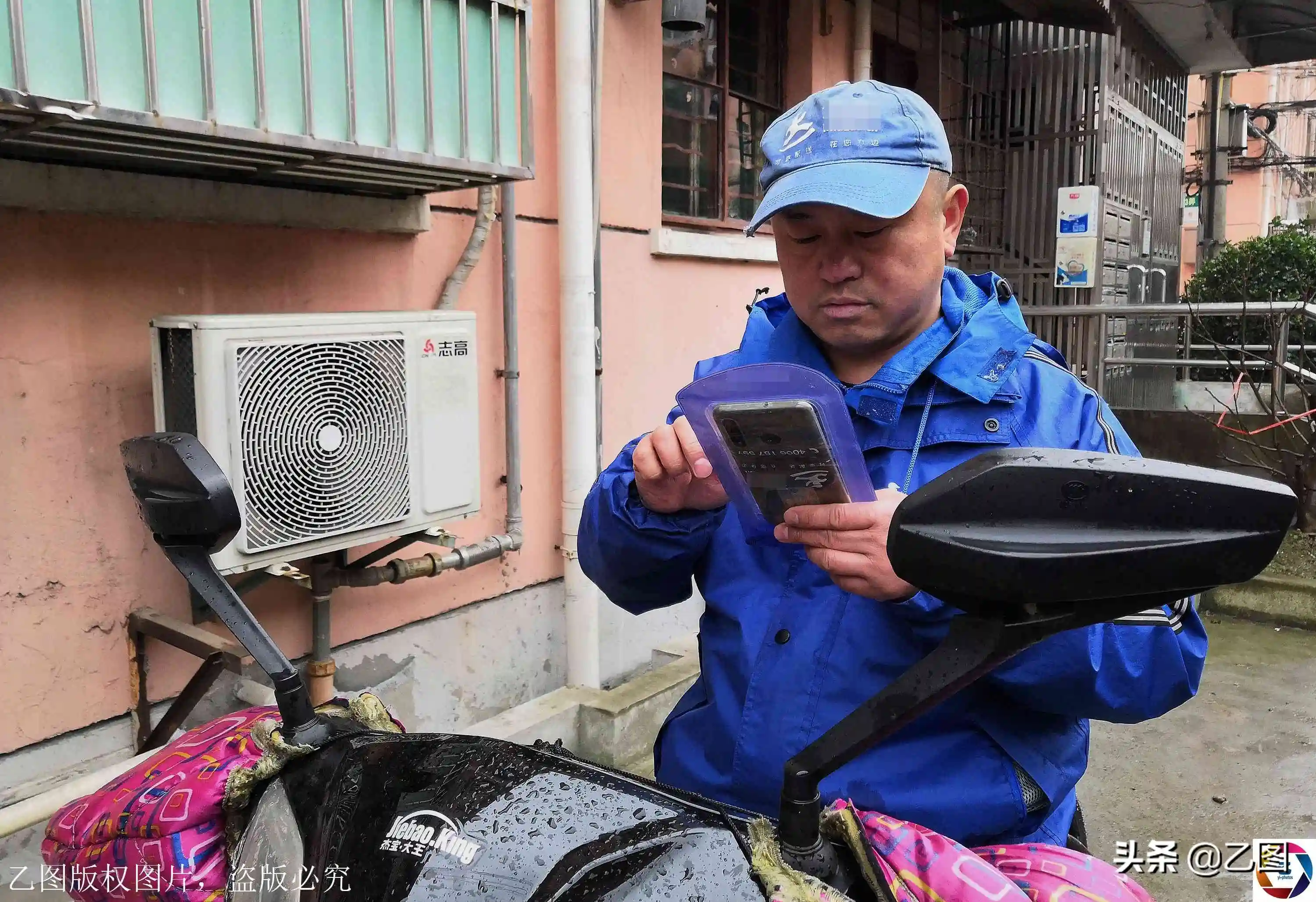 但孟祥军总觉得不是很走运,有一次赶急送餐剐蹭了一辆小轿车,车主劈头盖脸将他一顿痛骂,还要叫交警,孟祥军一个劲给车主道歉,求他别报警,也怕送餐超时扣钱,怕回家晚了儿子没吃饭,更怕车主让他赔偿。最后他翻出了手机里儿子生病的照片,对方知道情况后才没让他赔。图为孟祥军在接单。