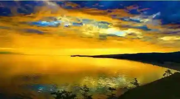 黄昏际,豪兴赋斜阳。湖水煌煌金剑敛,山林隐隐火轮藏。人面沐霞光。