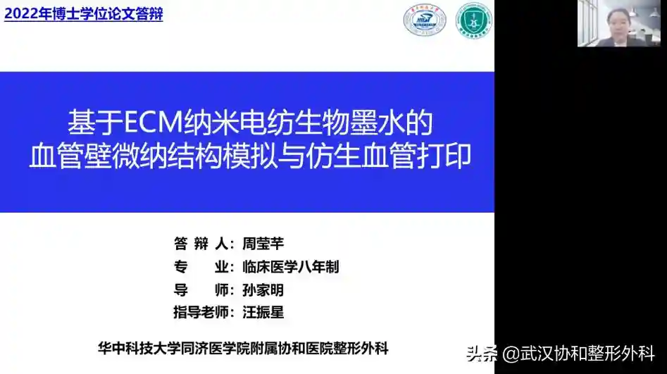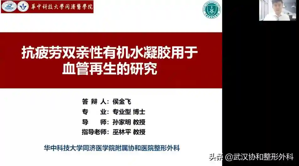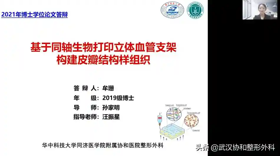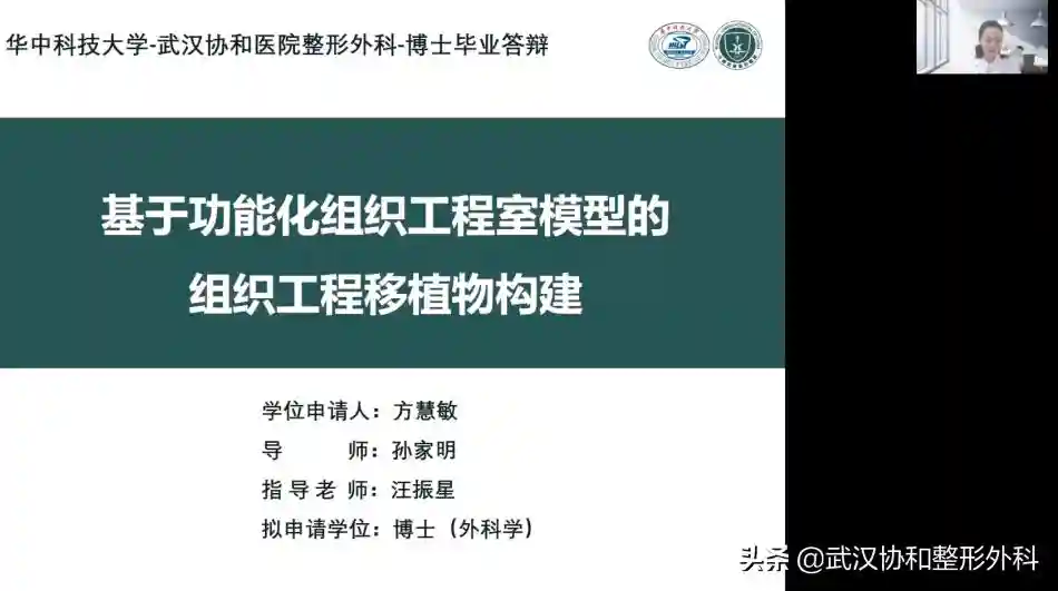 答辩会邀请了华中科技大学同济医学院附属同济医院整形美容外科主任吴毅平教授、武汉市第三医院整形外科主任杨艳清教授,博士生导师孙家明教授,硕士生导师李小丹教授、郭能强教授、钟爱梅教授、冯晓玲教授、王介聪教授、汪振星教授列席答辩会。