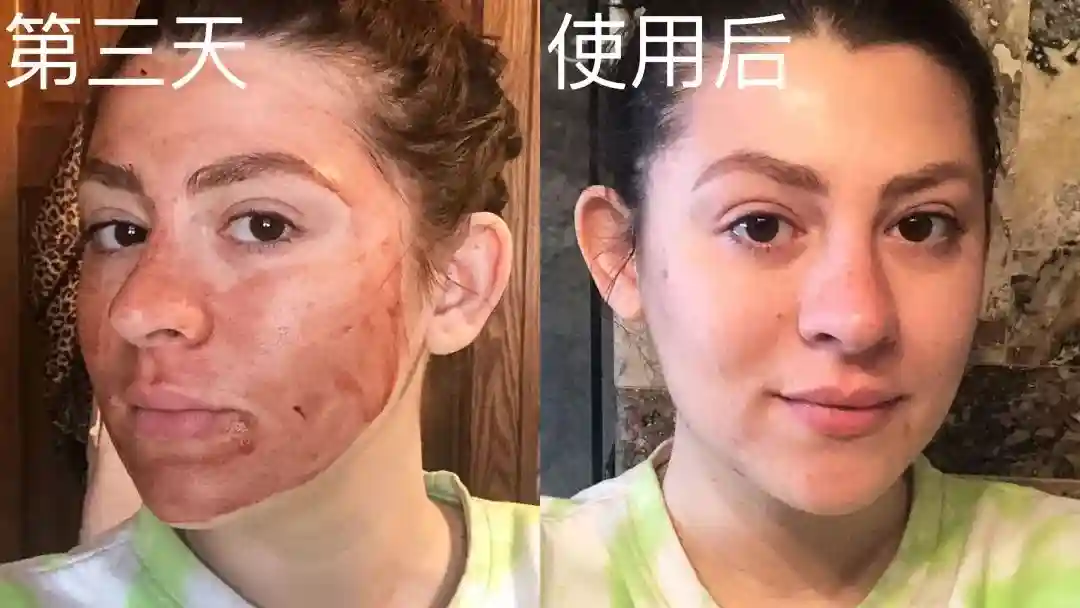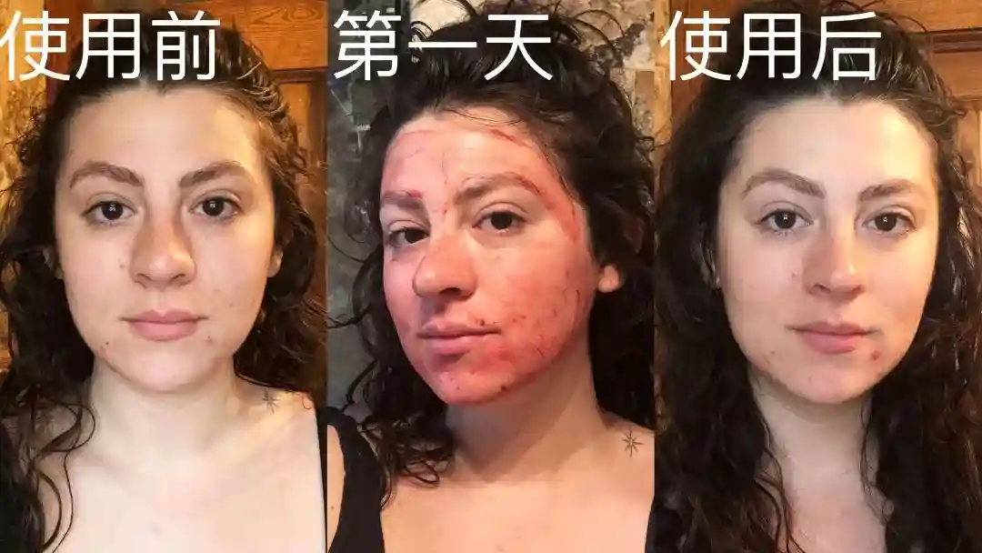 不仅如此,为了证明经血的作用,Jessica拍下了三次使用经血面膜后的对比照,她发现之前「惨不忍睹」的皮肤状态变得平滑、透亮了不少,下巴上的痘痘也在不断变小。为此她表示惊讶又兴奋,忍不住分享给朋友。