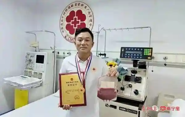 近日,在南宁市某医院的造血干细胞采集室里,小唐抑制激动的心情,静静地看着鲜红的血液流向一台细胞分离器,通过机器的运作,造血干细胞混悬液被一点点分离出来,为远方一名素不相识的血液病患者送去重生的希望。