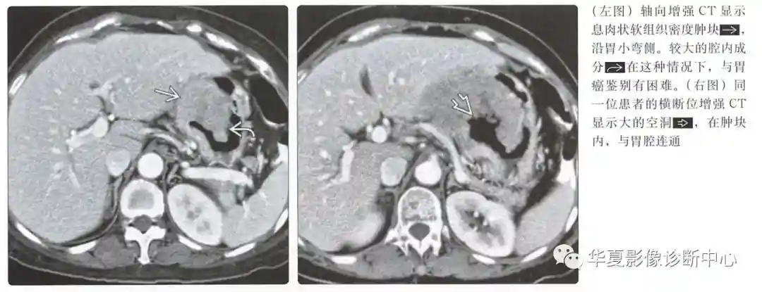具有大的腔内成分的肿瘤可能类似原发性胃癌