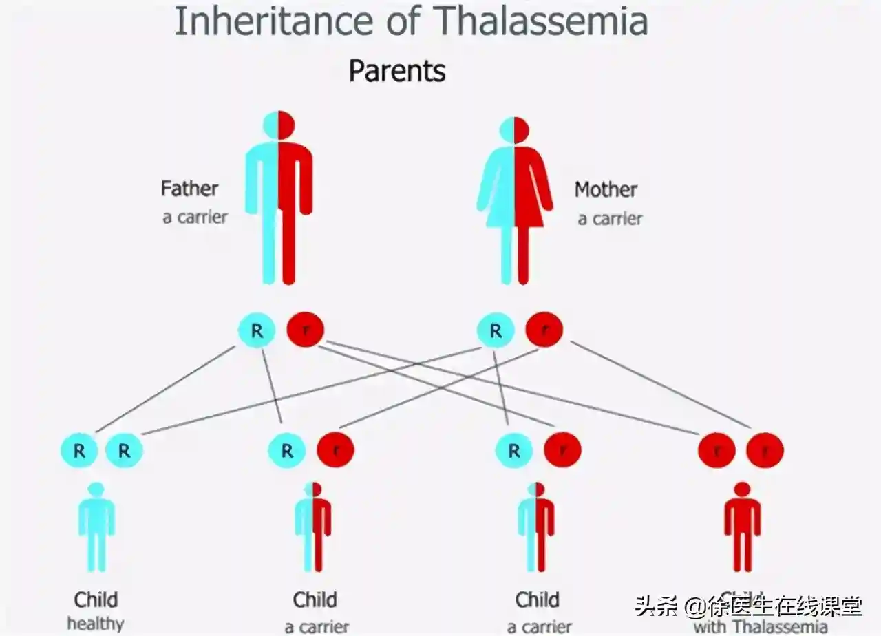 从基因分型上看,其实有四种,但我们这里先说两种,是α地中海贫血和β地中海贫血为高发的两种类型。β地中海贫血的杂合子因为没有或者仅有轻度贫血,我们一般叫作β地中海贫血基因携带者,如果出现明显贫血症状的话,就称为地中海贫血患者。