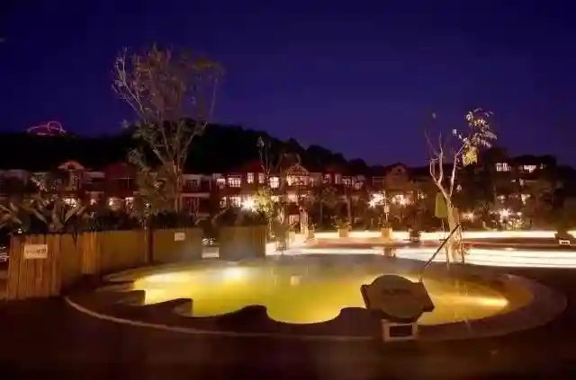 酒店坐落在充满德国风情的黑森林乐园,拥有各式汤池62个,温泉水吸取了地底大量矿物质及微量元素,其中“碳酸氢盐”和“铁”元素为主体的一地两泉在全国乃至全世界温泉中最为罕见。
