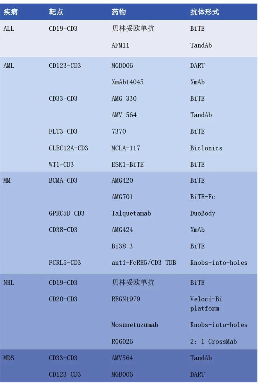 表1用于治疗血液系统恶性肿瘤的双特异性抗体