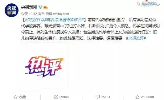 近日,某女星被曝在海外代孕生下2个孩子后弃养,事件一度发酵。