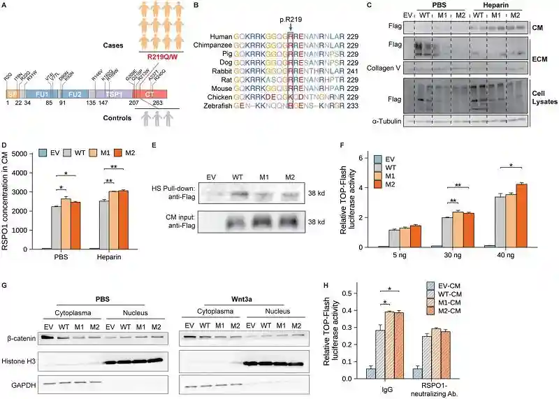 05突变破坏了RSPO1与细胞外基质的结合,导致更多RSPO1释放