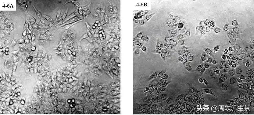 光学显微镜下观察到的FuzhuaninB对HeLa细胞的抑制作用图(×200),图A是阴性对照,图B是用浓度为10μMFuzhuaninB处理24h后的细胞图片。通过比较图A和B可以明显看FuzhuaninB对HeLa细胞具有抑制性。