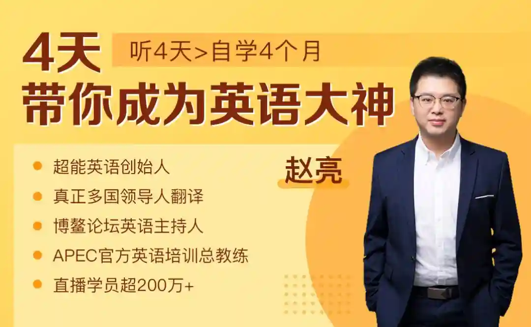 这么辛苦的路,赵亮不希望大家再去走。他耗时5年,以实用英语为核心,综合所学研发了一套课程「超能英语——4天蜕变为英语大神」